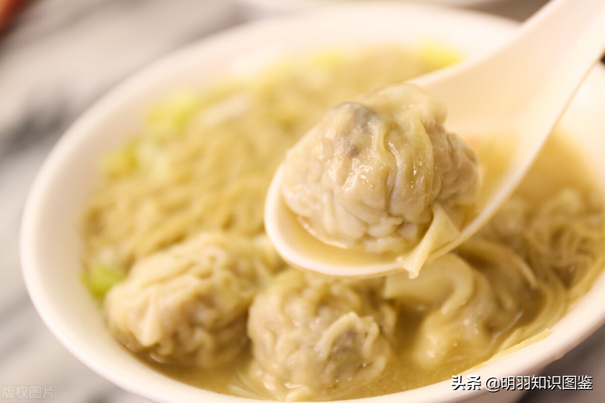 在粤语里,“馄饨”和“云吞”同音,所以馄饨面也叫云吞面,由馄饨、蛋面、肉类、蔬菜制成,在广东地区更为受欢迎。