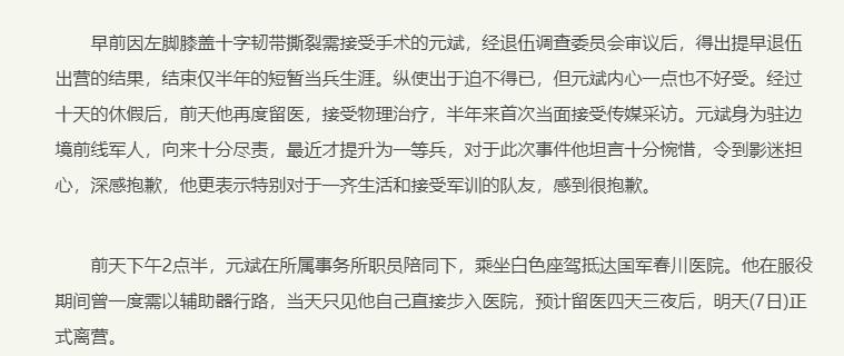 不过因为训练发生意外,元彬在服兵役半年之后,就因为膝盖严重受伤,提前退役。