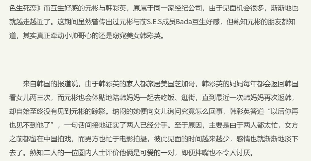 2000年,他和宋慧乔合作《蓝色生死恋》,虽然面对宋慧乔,元彬总是不知道说什么,可是对于同公司的艺人韩彩英,元彬可是特别热情,甚至传出了小暧昧。