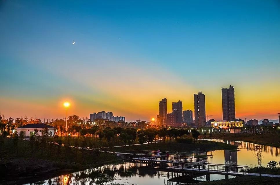 去槐荫公园看一次冬天的孝感全景,阳光洒在河面上,金灿灿的很耀眼。