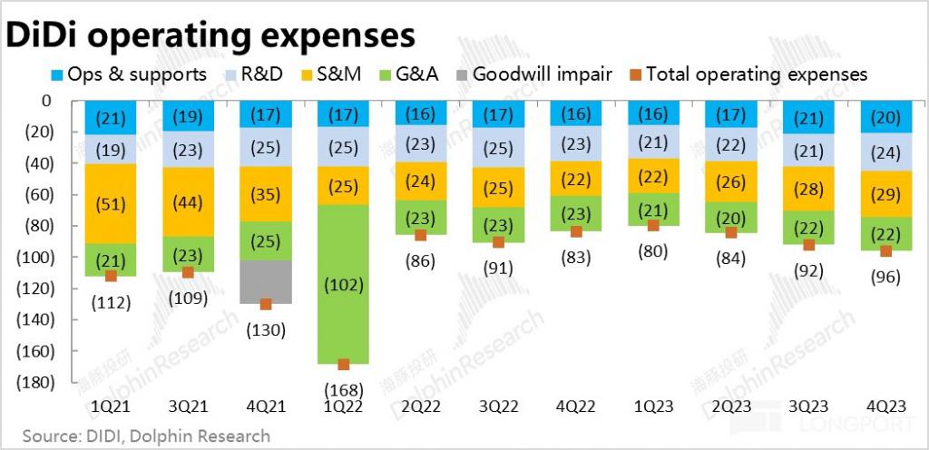 以上我们按板块分析了国内出行和海外业务的经营、营收和利润情况。以下来看本季的成本和费用变动情况。