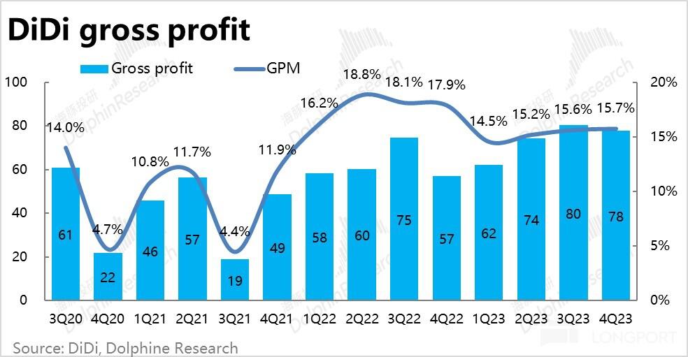 首先毛利上,由于收入占比约 9 成的国内网约车业务的成本主要由司机分成构成,因此毛利指标也是主要反映了司机分成比例的变化情况。因此本季毛利率由上季的 15.6% 环比小幅提升到 15.7%,也可推测出给司机的分成大概率是下降的。