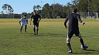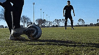 但如果我们用脚的外侧传球,我们就能立刻传球给队友。