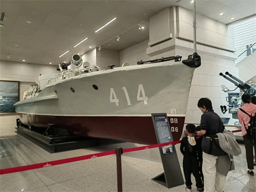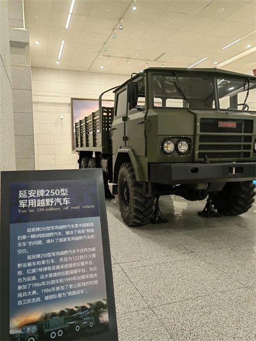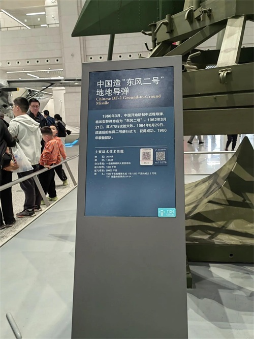 除了飞机,展厅里还有军舰,大炮,坦克,越野车等等武器装备,五花八门。特别是“东风2号”地对地导弹,高高耸立在展厅的中央,格外瞩目。据介绍,东风二号在1960年3月开始研制,是地对地中近程导弹,1962年首次试飞失败,1964年改进后试飞成功,1966年装备部队。五十多年后,2019年国庆70周年阅兵,首次亮相的“东风-41”已是洲际弹道导弹了。据说“东风-41”可携带大约10枚分导式多弹头,最大射程约14000千米,从中国大陆发射几乎可以打击全球所有目标,这就是中国的底气,东风系列导弹是保家卫国的重器,更是捍卫和平的坚强力量!