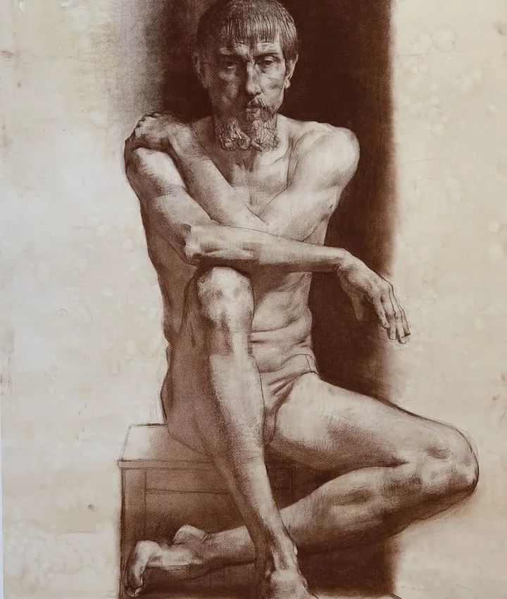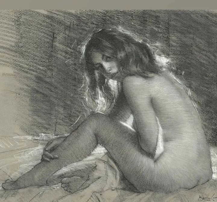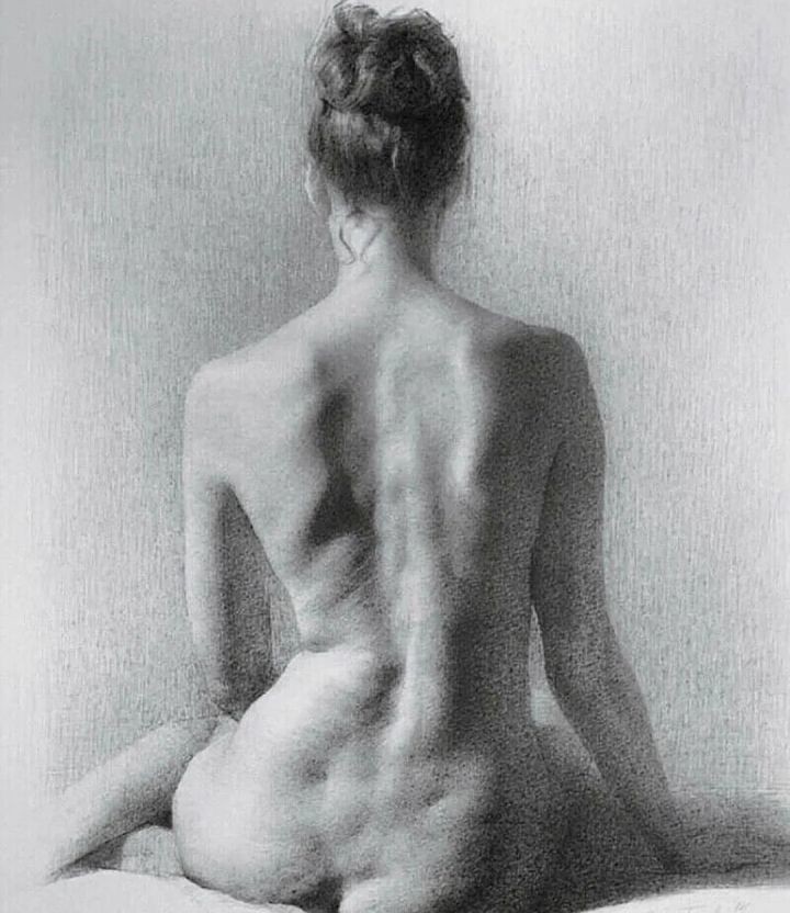 素描与人体的结合使两者之美撞击交融,相得益彰,人体以素描作为表现浯言展示其形的光华,素描亦因有幸选择人体,使黑白的独具的精神魅力芬芳流溢。
