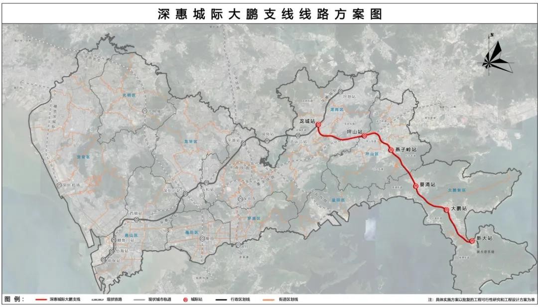在坪山设2站:坪山站、燕子岭站;在大鹏设置3站:葵涌站、大鹏站、新大站。