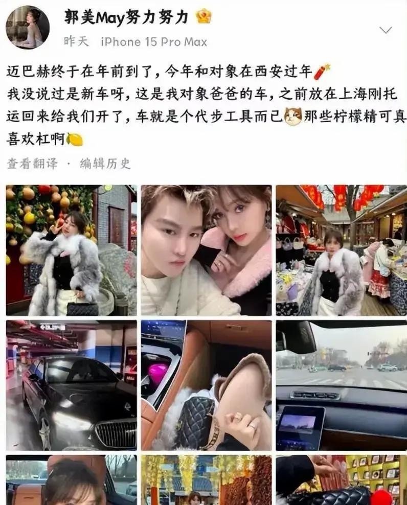 不仅炫富,郭美美还开始炫起了"幸福"。她现在正在和一位女性伴侣交往,两人在网上秀恩爱,纸醉金迷。这位同性伴侣出手阔绰,几乎每天都会送她奢侈品礼物。郭美美还晒过婚纱照,一副即将嫁入豪门的架势。七夕节,两人还见了家长,看起来感情进展神速。