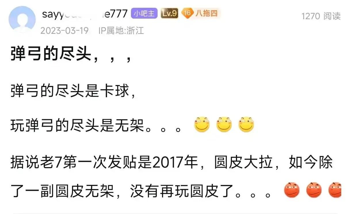 点评:这哥们定义了“弹弓的尽头是卡球”,只是个人对自己爱好的一种过激表达而已,大家没有必要上纲上线。