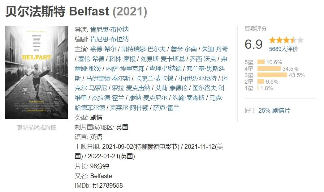 本作导演肯尼思·布拉纳,演而优则导,讲述了1960年代末动荡时期,一个在贝尔法斯特长大的男孩的故事,同样的黑白摄影,很容易让人联想到阿方索·卡隆的《罗马》。