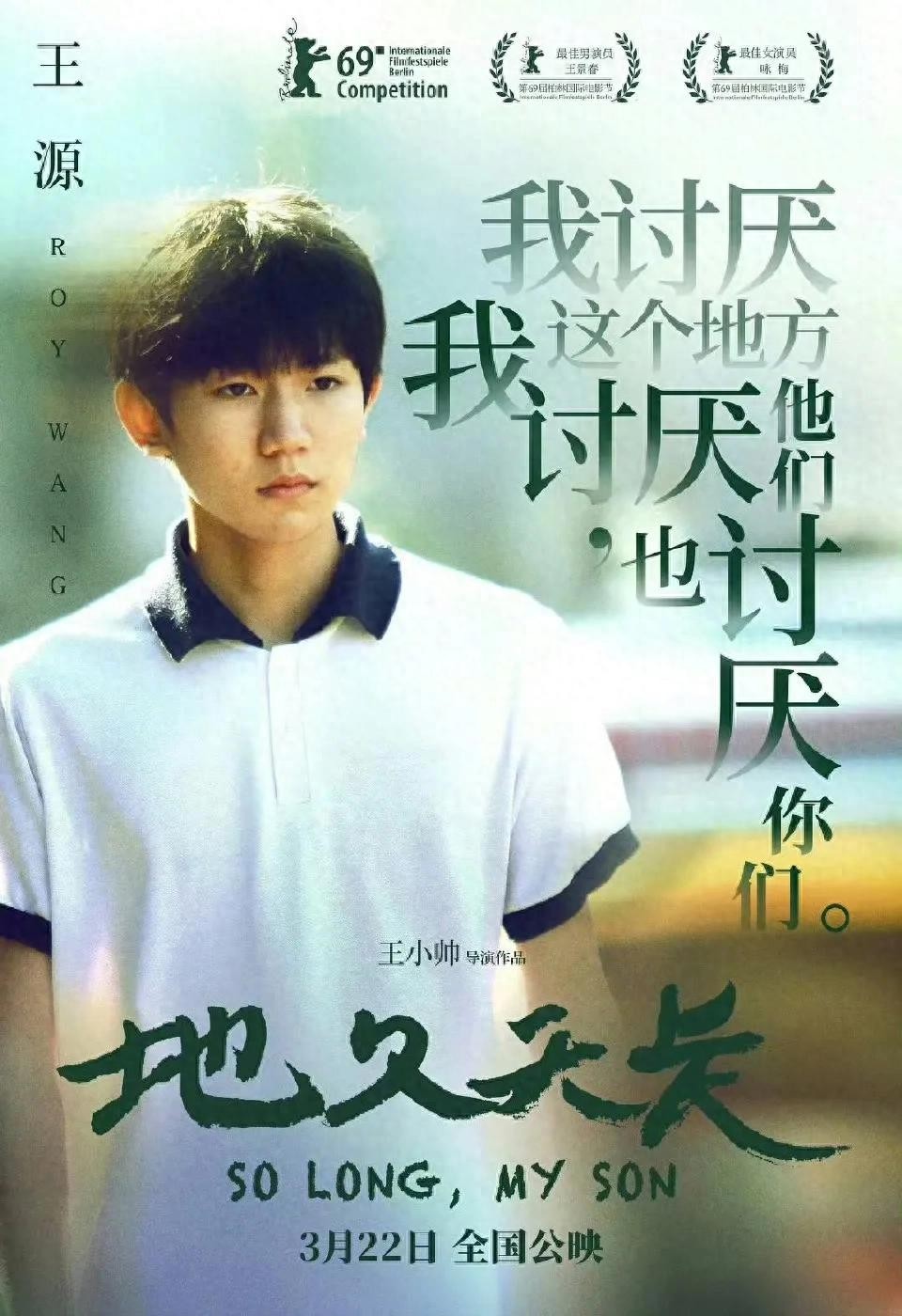 不讲剧本,王小帅导演让王源即兴表演,在一班老演员里,初入剧组的王源就迎来了刘星和养父母第一场激烈对手戏:一家三口剑拨弩张的画面。面对同学的孤立、老师的片面之词和养父不信任的质问,倔强的刘星眼里含着愤怒,挣扎着被养父扭疼的手腕,他的眼神也从愤怒变成渴望被理解、疼爱。凝固的空气里传来刘星忍着痛的声音:“对不起,我让你们嫌弃了。”盛怒中的养父感受到了刘星的悲伤和疼痛,不由松了手劲,挣脱养父的束缚,刘星跑出了家门……他拜别养父,再一次选择了流浪,坐在流浪小伙伴的摩托车尾上,尘埃里是依依不舍对家的留恋。在实力派演员王景春、咏梅的双重高光下,王源表演不俗,靠演技吸引了不少观众的目光,这也为王源日后的角色打下了伏笔。2018年,《地久天长》进入柏林电影节主竞赛单元,王景春、咏梅老师也凭此角色双双拿下了柏林电影节的最佳男主角、女主角,18岁的王源成为首位携作品入选柏林国际电影节主竞赛单元的“00后演员”,这是演员王源的魅力时刻,更是他表演天赋的认证。