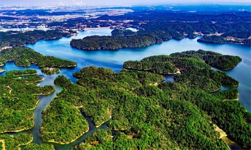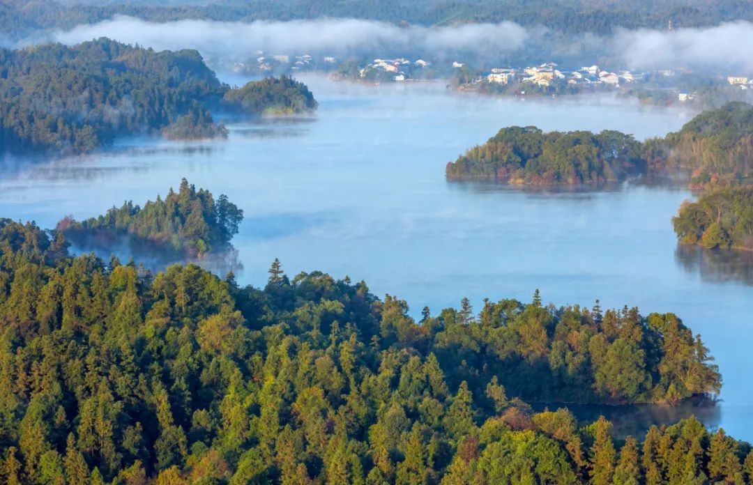 仙女湖是江南典型的湖岛型景区,湖中97座两亩以上岛屿形态各异,60多条湖湾扑朔迷离。景区由曲水通幽舞龙湖、两峰对峙钟山峡和烟波浩渺钤阳湖三部分组成。湖区属典型亚热带气候,阳光充足、空气清新、气候宜人,全年平均温度17℃左右,年均水温16.8℃,相对湿度80%,平均降水量1600mm,湖面海拔70米,常年平均蓄水量3亿立方米左右,水质为国家二级标准,尤其是景区内小气候冬暖夏凉,是休闲度假的绝好去处。