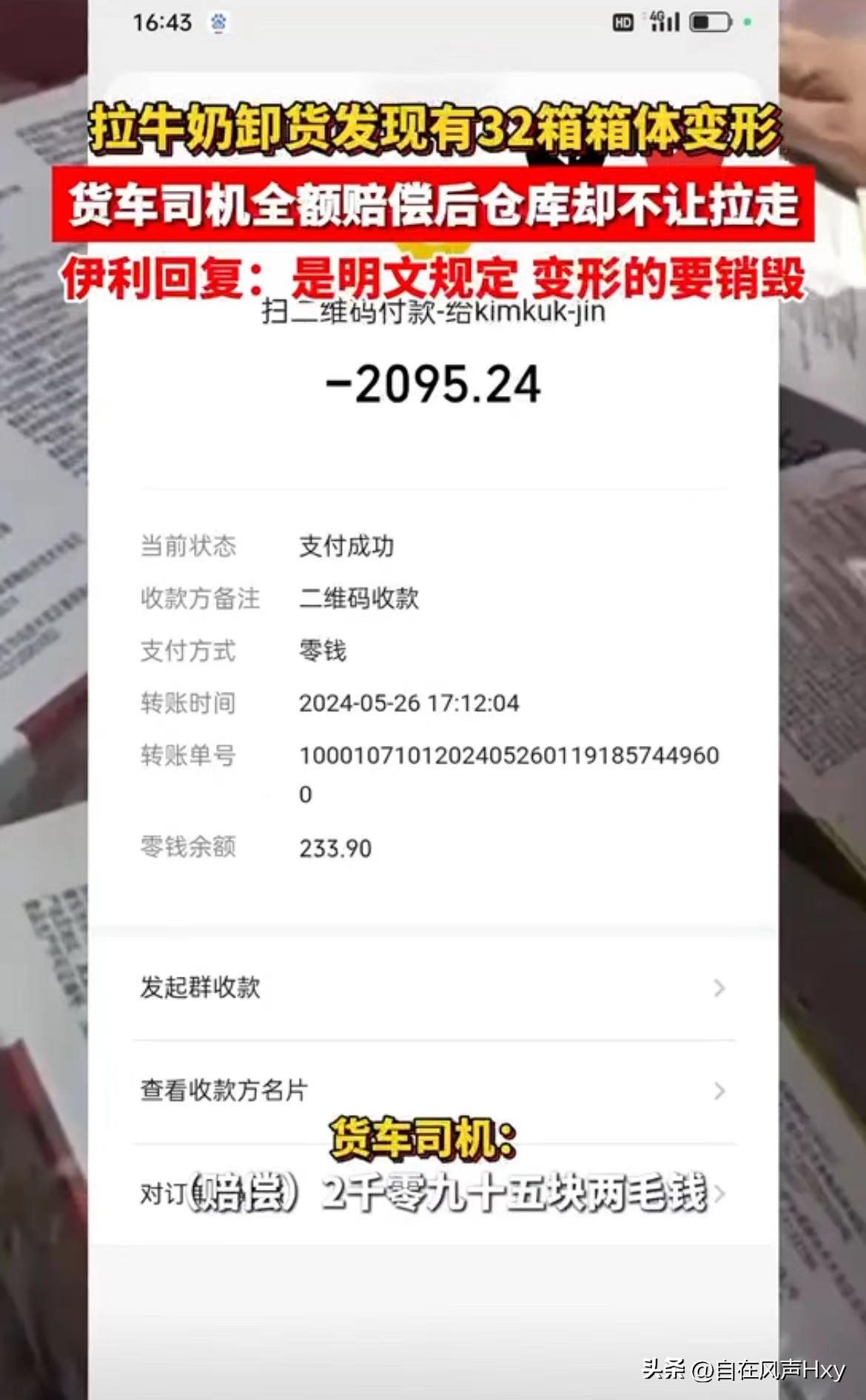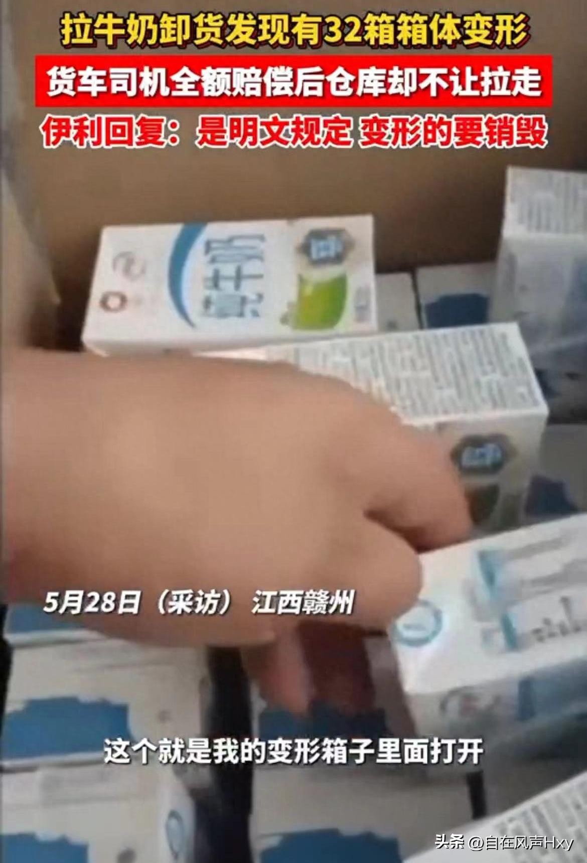 伊利牛奶破损事件发酵:司机拒绝和解,品牌方回应称为合同违约!