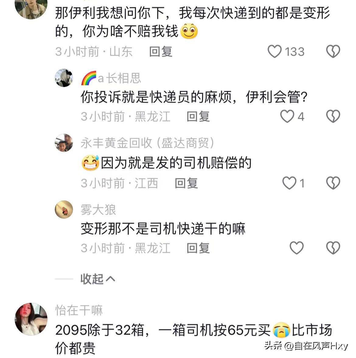 这样的处理方式让公众大跌眼镜,不少网友纷纷表达了对伊利公司的不满。他们质疑,为何企业可以如此轻易地要求司机承担全部责任?为何在赔偿后还要限制司机带走破损的牛奶?这样的做法是否过于苛刻,是否缺乏人性化和公平性?