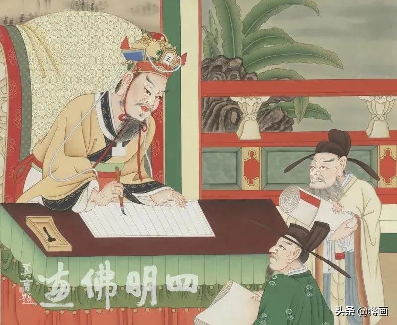 在南宋著名佛画家陆信忠笔下,这十个阎王被称之为“十王”,《十王图》描述的就是掌管阴曹地府的“十殿阎罗”。而两宋时期正值中国对外海域交流圈的开放,“十王信仰”作为一种宗教文化,通过江南的贸易港口城市宁波,经由海上丝绸之路传入至日本、韩国,承载着“十王信仰”的《十王图》也由此开始东传。