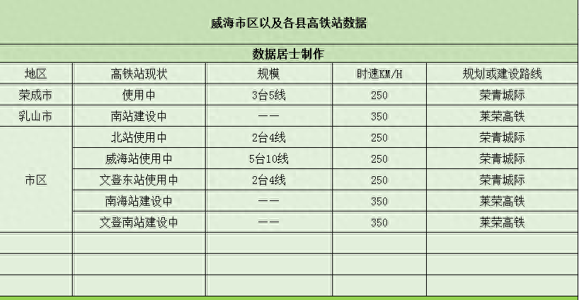 威海市-将拥有7个高铁站,已经开通四个,还有三个在建设中