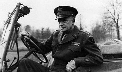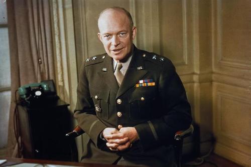 第五位,艾森豪威尔。这是一位当过总统的将军。1915他毕业于西点,进入军队,一路攀升,最后在1944年坐到了欧洲盟军总司令的位置上,1952年又成为总统,他在位期间算是美国相对比较稳定和繁荣的阶段。