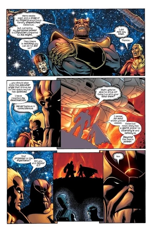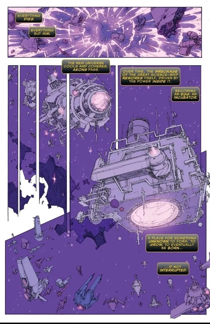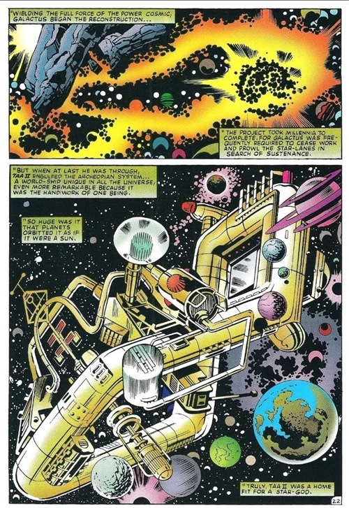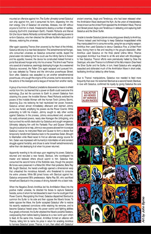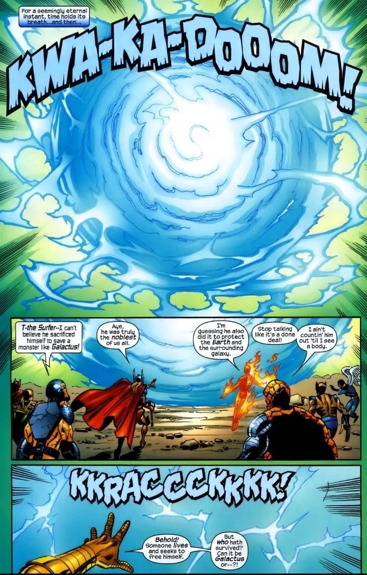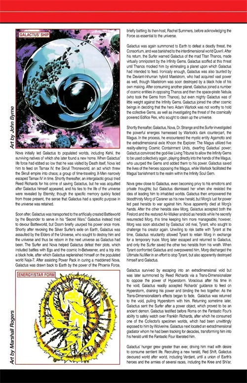 Galan与前一个宇宙的知觉结合,在永恒 的允诺下作为吞星重生;他无止尽的食欲为宇宙带来了平衡。