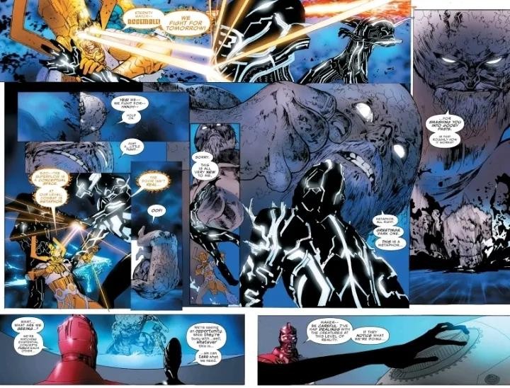 带领Eternity Watch对抗Logos和黑暗天神,至高进化指出他们正在目睹存在的概念彼此互殴。