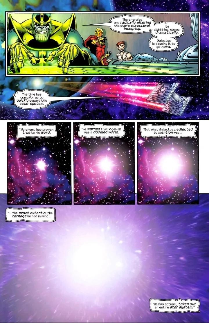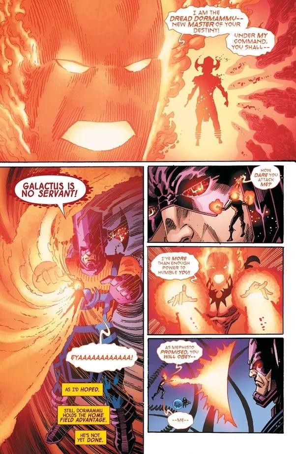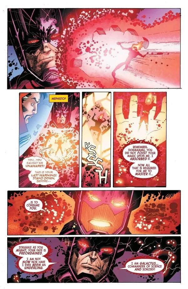 吞星在墨菲斯托的领域里与之交战,战斗之激烈撼动了多个星系,震碎了无数颗星球,并威协整个宇宙。
