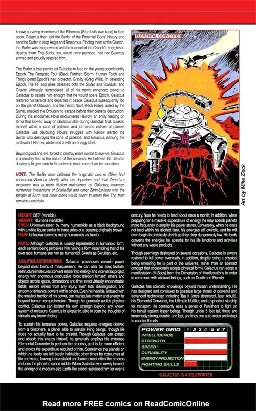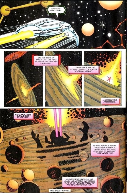 尽管似乎被摧毁了好几次,但行星吞噬者最终总是恢复到全功率。 此外,尽管是物理存在(意味着他是宇宙的一部分,而不是偶尔采用物理形式的抽象概念),但行星吞噬者可以通过显化维度采M体来与抽象交流,诸如死亡和永恒之类的存在。