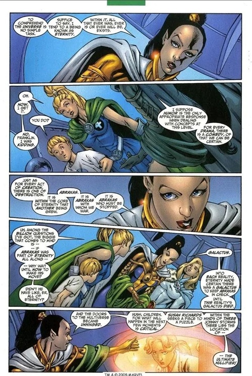 Franklin Richards指出自己与吞星代表着宇宙的平衡,一个是最高的创造者,一个是终极的毁灭者。
