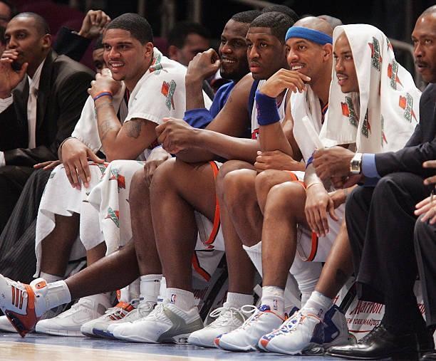 上图是2006年尼克斯的替补席,看看这些肉嘟嘟的脸蛋,从左到右,“便士”、姚明前队友莫里斯.泰勒、马刺名宿罗斯、03黄金一代斯威特尼、“垃圾狗”威廉姆斯、马政委。