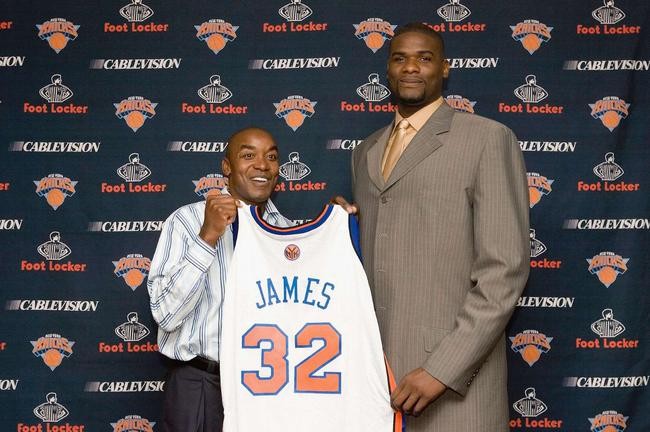 詹姆斯终其一生只是一个普通的替补中锋,但是2005年季后赛首轮,在超音速与国王的5场比赛中,他场均32.2分钟,17.2分9篮板2.2封盖!从而引起了尼克斯的兴趣,以5年3000万的合同“套牢”了这个伟男子,然后詹姆斯4年总共打了89场比赛,场均贡献忽略不计。