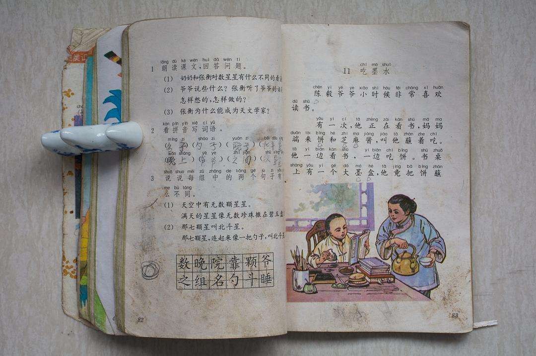 没错,就是这幅图,少年时代的记忆深深刻在脑子里。本着继续求真务实的精神,在网上搜了一下,发现其实有关喝墨水的故事版本还有很多。