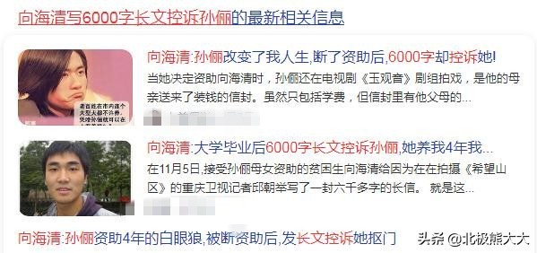 2006年,大学生向海清写了一篇6000多字的长文控诉孙俪,骂她虚伪假慈善。