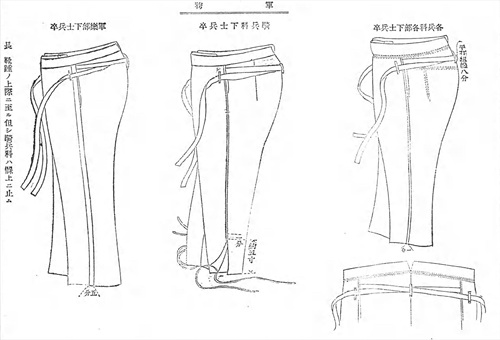 军士和士兵军裤:左边为军乐部,中间为骑兵科,右边为其他兵科