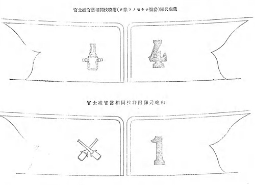 炮兵科下的重炮兵(上)和山炮兵(下)领章