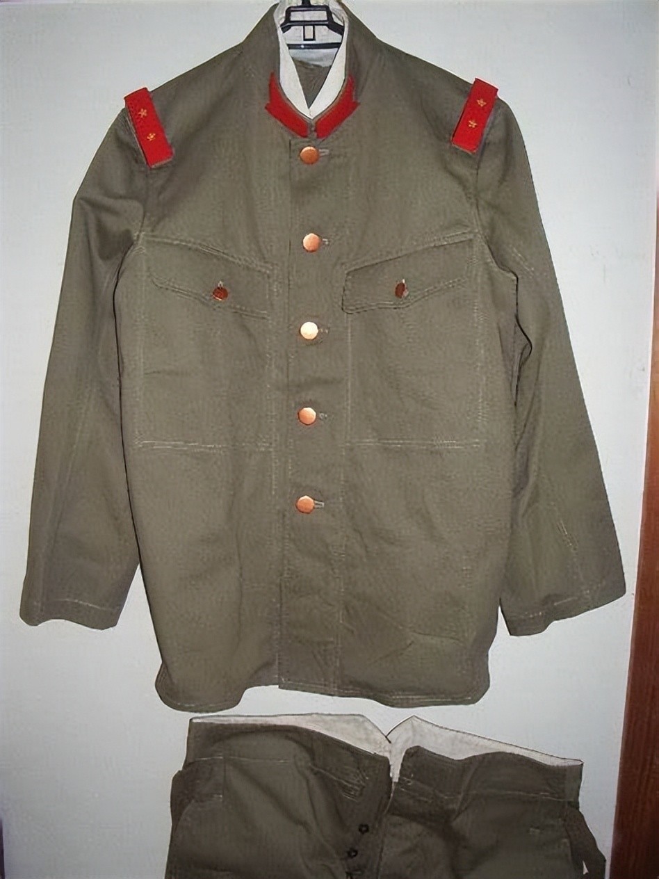 改四五式军官军服:去掉了袖口的红色滚边线,胯袋增加了袋盖,后背是一整块布料(四五式特征)