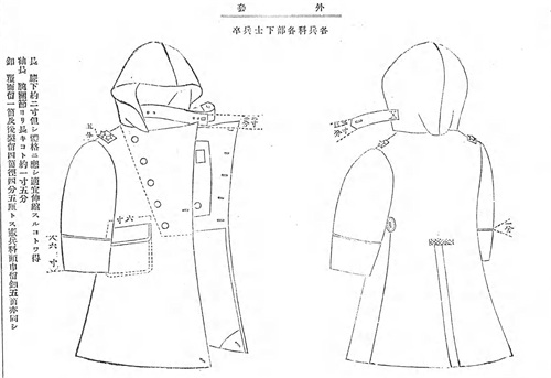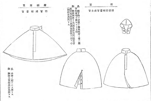 披风(日语:雨覆)只有军官才有。披风领口有一颗纽扣闭合,下部敞开。