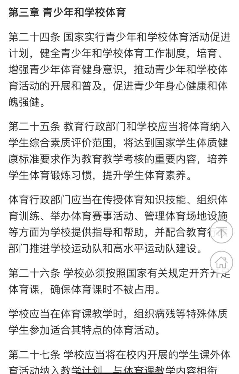 新修订体育法在第三章青少年和学校体育中,明确: