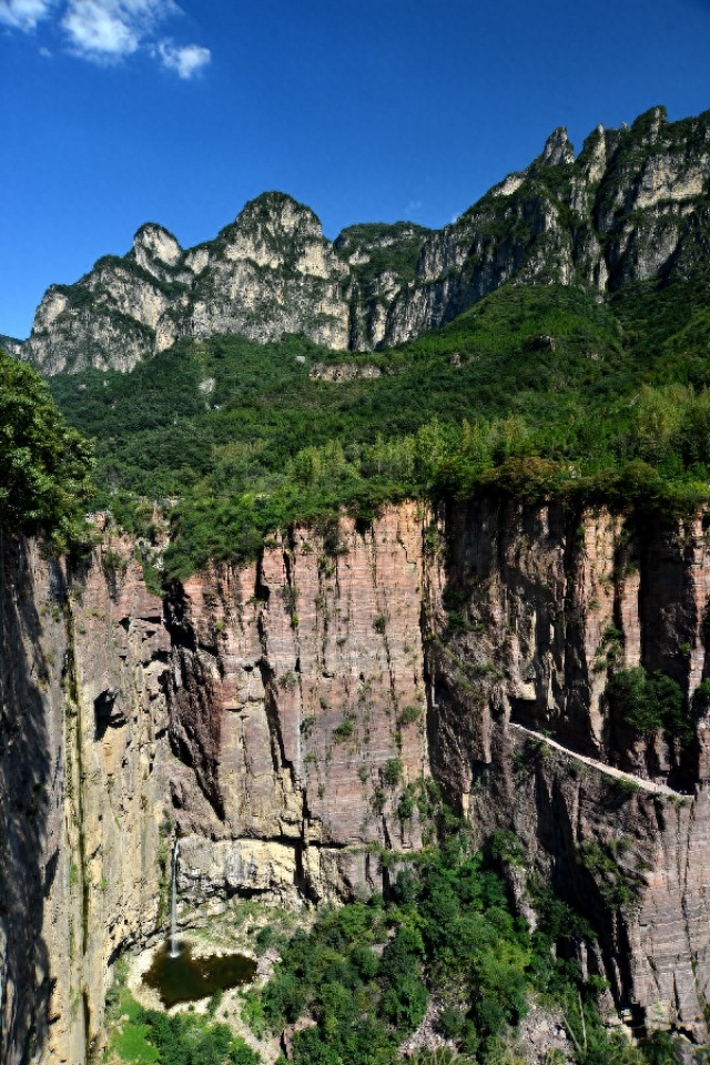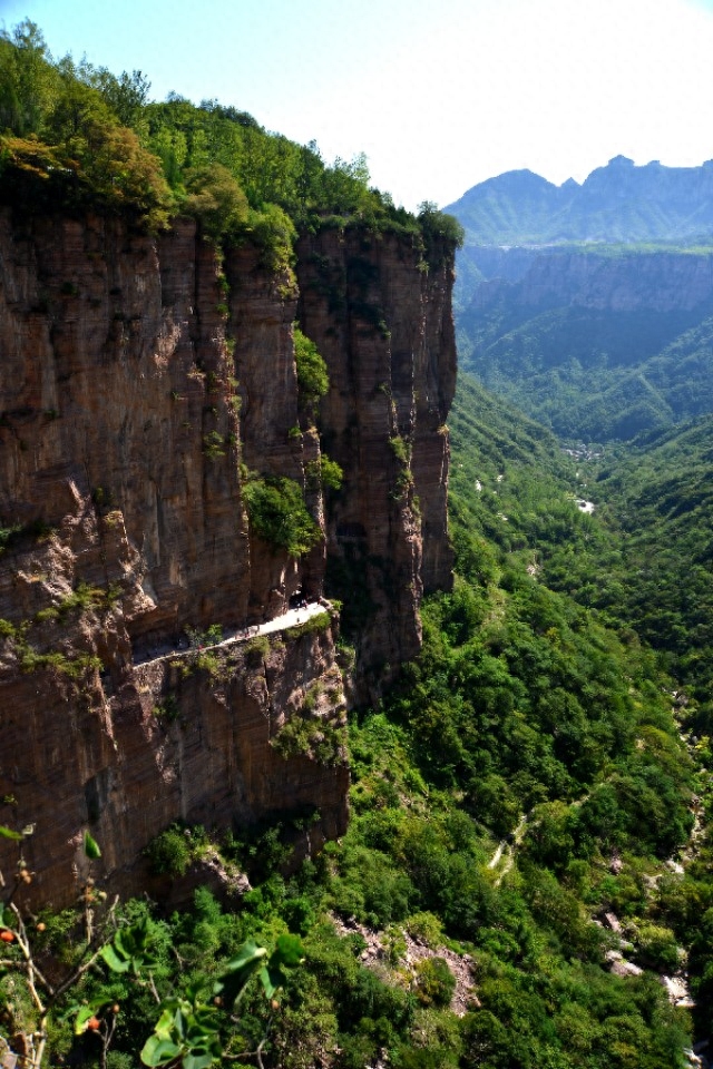 1972年至1977年十三个人用了五年半时间凿成。本来是解决出路问题,没想到成为绝好的旅游资源,非常震撼人心。挂壁公路对于是山上的独特风景线,在陡峭的悬崖峭壁上开凿出来的一条条公路,可以见得其险峻的程度,因为在公路上可以体会到下面就是万丈深渊的感觉,很是刺激,被许多游客所喜爱,堪称世界上最奇特的公路。