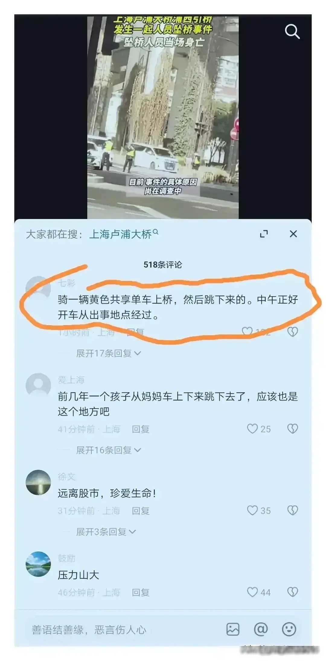 最近,一则令人震惊的消息传遍了上海,乃至全国。12日中午,在繁忙的卢浦大桥上,一名男子突然从桥上跳下,消失在江中。这不仅是一起悲剧性的自杀事件,更是对现代社会的一次震撼人心的拷问。