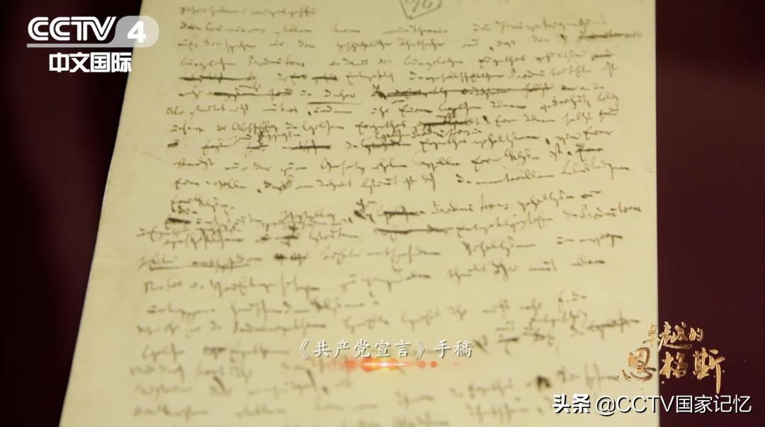 ▼图:《共产党宣言》现存于世的唯一一页手稿,2013年被联合国教科文组织列入《世界记忆名录》