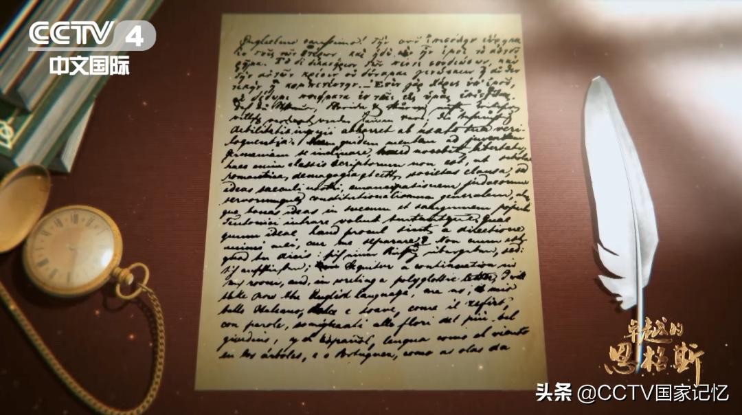 ▼图:恩格斯写给中学好友格雷培的一封信,信中包含德文、英文、法文等9种语言,显示出了超人的语言天赋