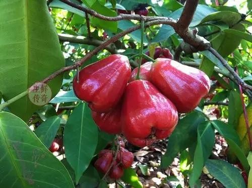 海南水果中,要数最漂亮的那肯定是莲雾了。莲雾的外形像一个挂着的铃铛,把它放在地上又像一个莲台,所以被称为莲雾。莲雾种类有很多,种类的不同果色也不尽相同,但色彩都较为鲜艳,有清绿色的、粉红色的、大红色等等。选择莲雾时别忘了根据色彩来选择呢!不同颜色的莲雾口味更是不一样的。清绿色的丝丝清甜;粉红色的水份较多,甜中带酸;大红色的水份较少,但香甜可口。