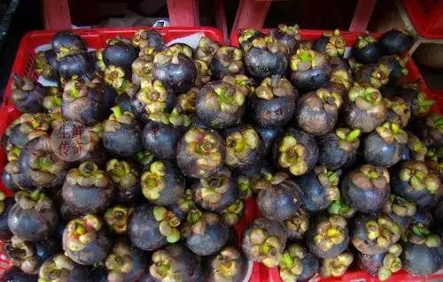 山竹的果壳呈黑紫红色,掰开果壳露出洁白晶莹的果肉,果肉一瓣瓣抱作一团,像一头大蒜。有“热带果后”之称。山竹的味道清甜微酸,非常可口。山竹相对榴莲,性偏寒凉,有解热清凉的作用,可化解脂肪,润肤降火,若皮肤生疮,年轻人长青春痘,可生食山竹,也可用山竹煲汤。一王一后,一热一凉,吃了大补的榴莲之后,再吃山竹有清热的功效。所以山竹也不宜和一些寒凉的食物同吃。