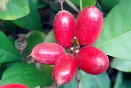 21、神秘果(天下第一奇果)大自然中无奇不有,南亚热带植物园有一种不可思议的水果--神秘果,吃了以后再吃别的酸性水果会觉得甘之如饴,酸味不复为酸。神秘果属山榄科的常绿灌木,一年中多次开花结果。神秘果直径约一公分,长约二公分,成熟后表皮鲜红,白色果囊内有褐色种子一颗。