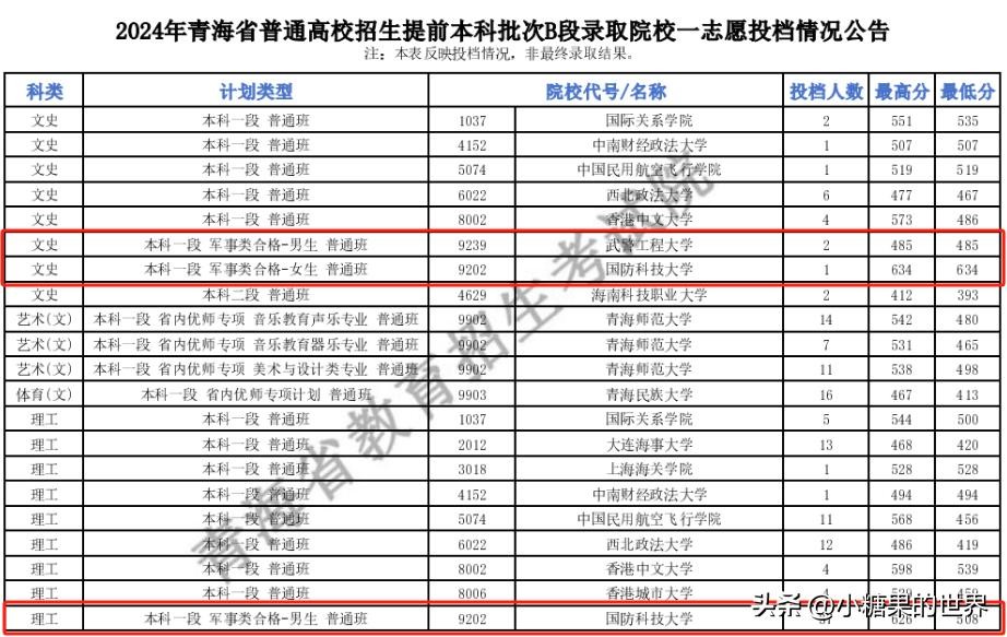 2024年在宁夏理科招生的军校中,收分最低的是武警特种警察学院,2024年最低投档分452分;收分最高的是国防科技大学,2024年最低投档男生532分、女生562分。