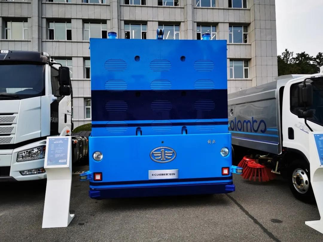 这款车即没有驾驶室也没有方向盘,已经不是传统意义上的车了。它就是解放L4级别的4X4智能港口集运车。这款车具有智能化功能,采用了多传感器融合感知定位、精准横纵向控制智能路径决策规划、后台监控调度,V2X车路协同感知、远程OTA升级远程驾驶等功能。