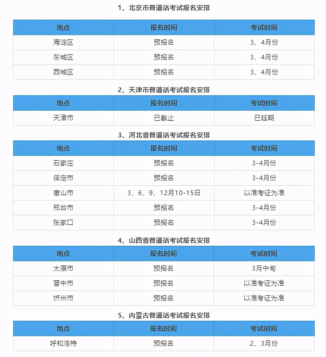 春节假期结束,很多地方已经陆续开始放出2021年上半年普通话水平测试考试报名安排,一般而言,普通话水平测试考试每年3-5月和9-11月进行。2月下旬至3月份我们可以看到各地区普通话水平测试考试的安排密集出炉。