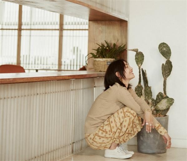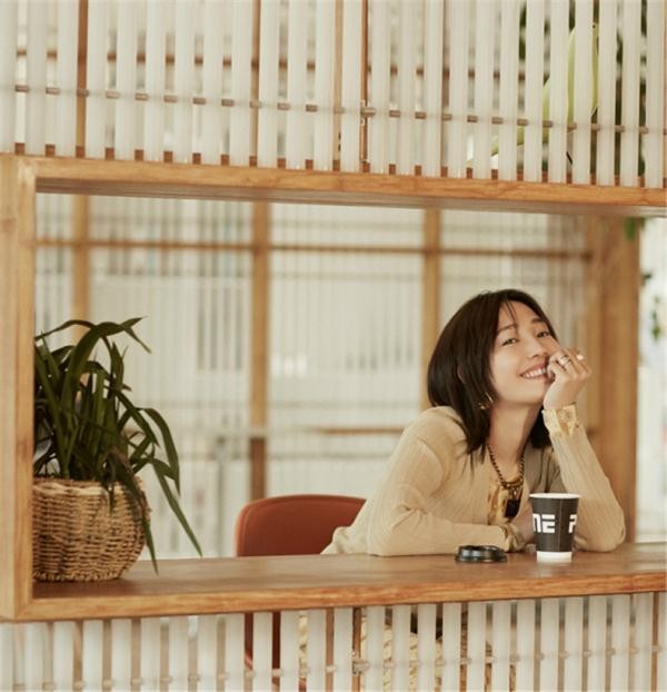 她身上的着装也跟往常干练的风格完全不同,只见她上身穿着一件卡其色的上衣,针织外套一向是温柔女人最爱的单品,白百何也不例外,穿上这件外套以后整个人的气场都降低了,显得更有亲和力。
