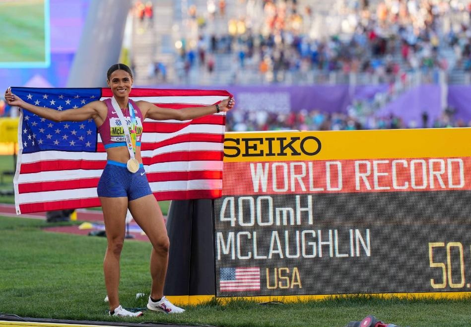 说起这场比赛,就不得不提美国猛女麦克劳林,这可真是个狠角色!你看她那风驰电掣般的速度,在赛场上就像一道闪电,一骑绝尘!这次,她以50秒37的惊人成绩,不仅轻松夺冠,还把自己之前保持的世界纪录提高了0.28秒!这速度,真是让人目瞪口呆!