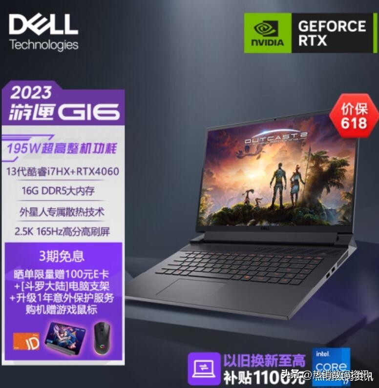 戴尔游匣G16系列:戴尔旗下最好的一款游戏本, 2.5K的分辨率, 16英寸的尺寸, RTX4060独显版本售价在¥9999.00左右。