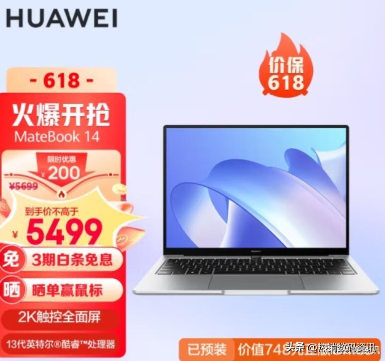 华为笔记本电脑MateBook 14 2023款,13代酷睿版,2K触控全面屏,京东价¥5499.00左右。