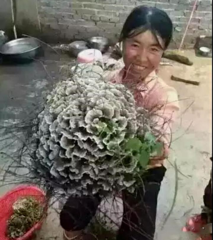 昆明宜良县的村民上山采到的巨无霸干巴菌,据说这朵干巴菌价值5000元。