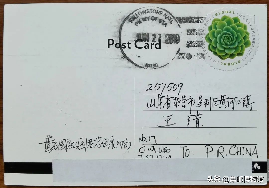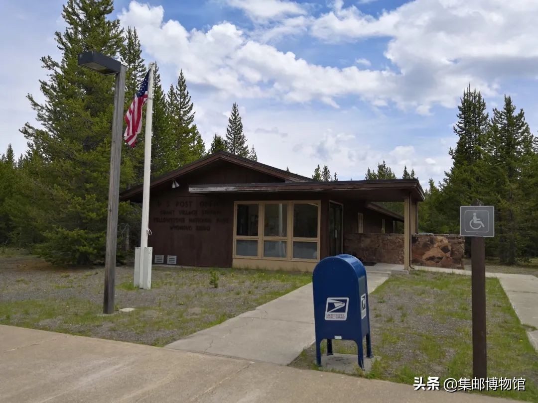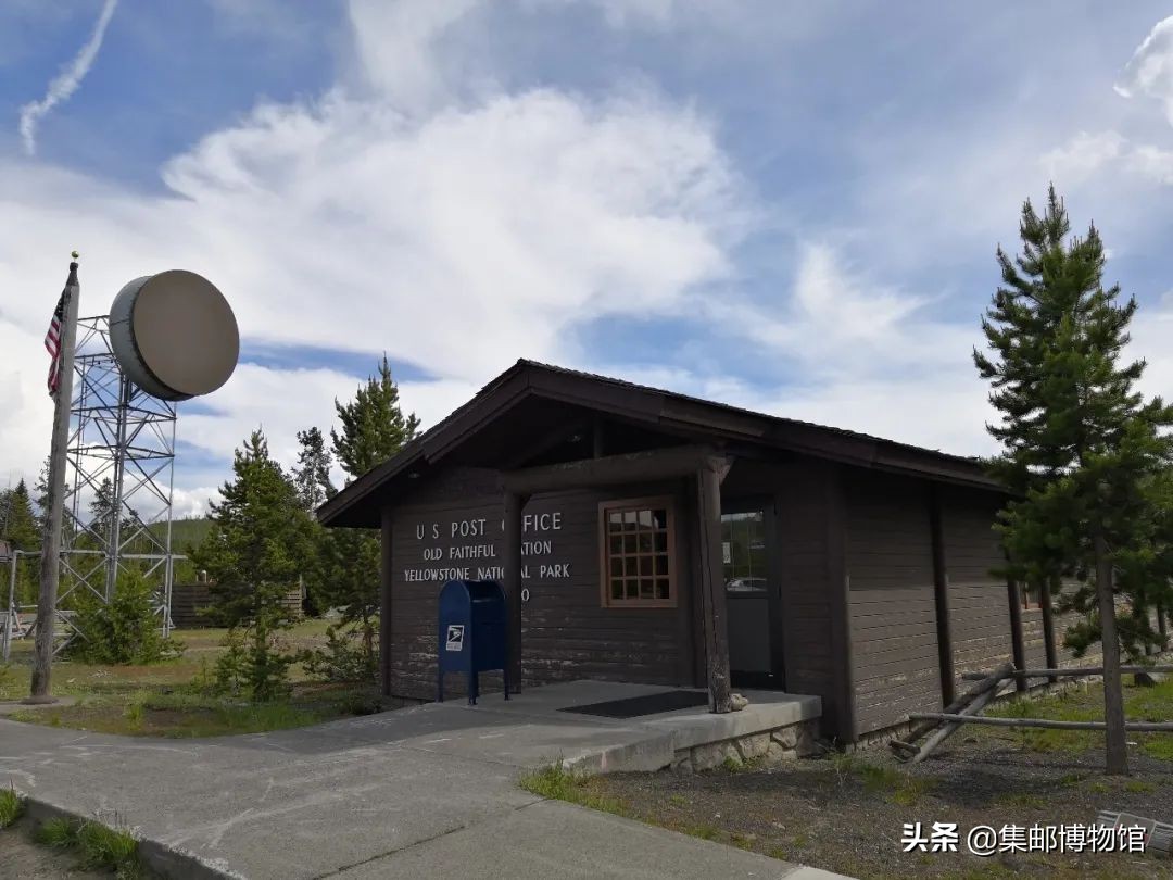 图17为怀俄明州黄石国家公园内的老忠诚邮局,邮局前广场上有美国国旗,有公共信箱。